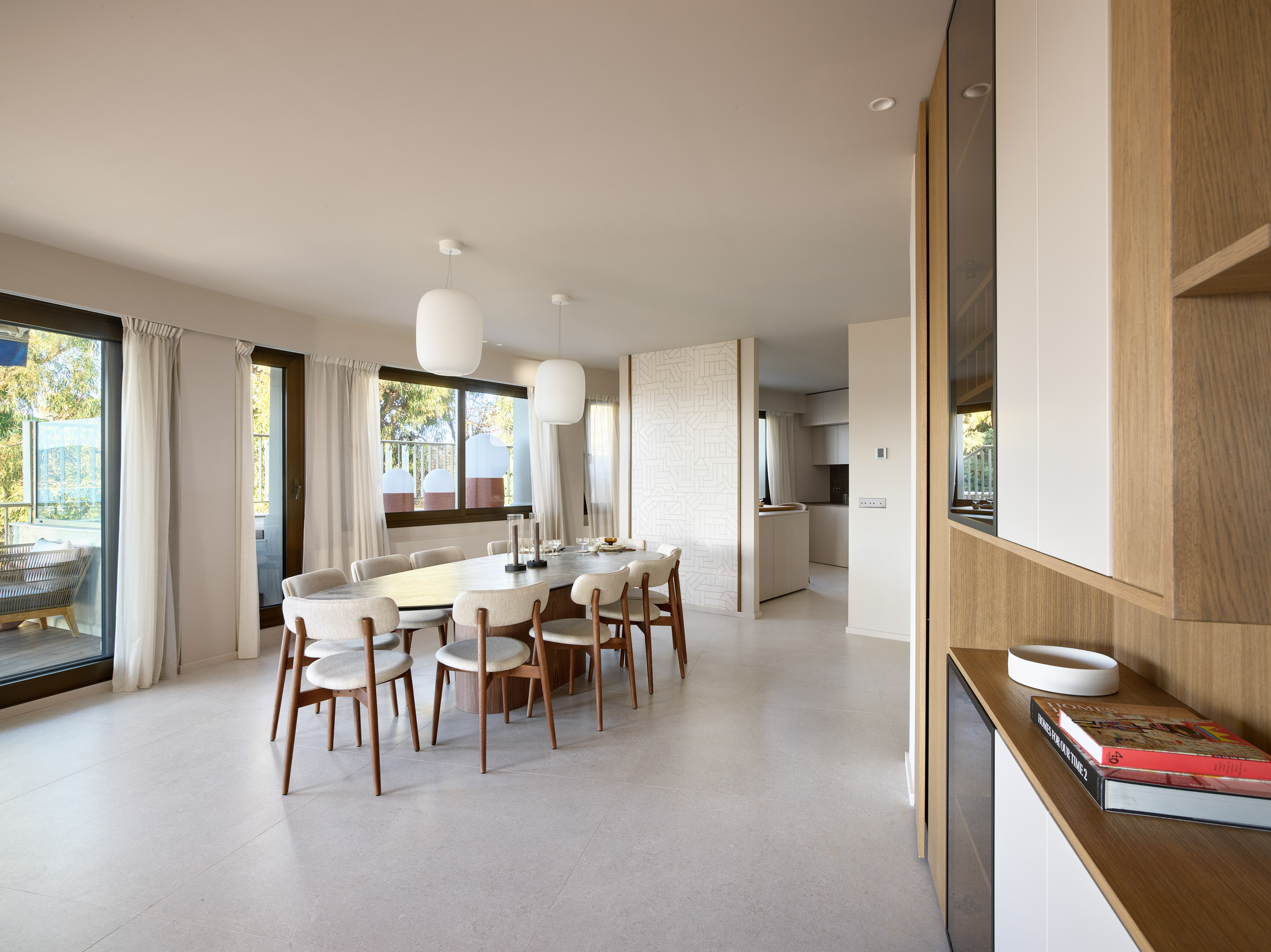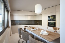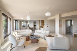 L’appartement comprend un vaste espace de vie de plus de 100 m2, comprenant un salon, une salle à manger et une cuisine entièrement équipée, le tout s’ouvrant sur une terrasse spacieuse.