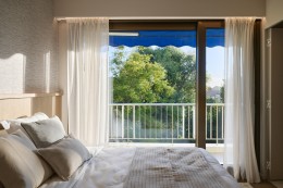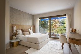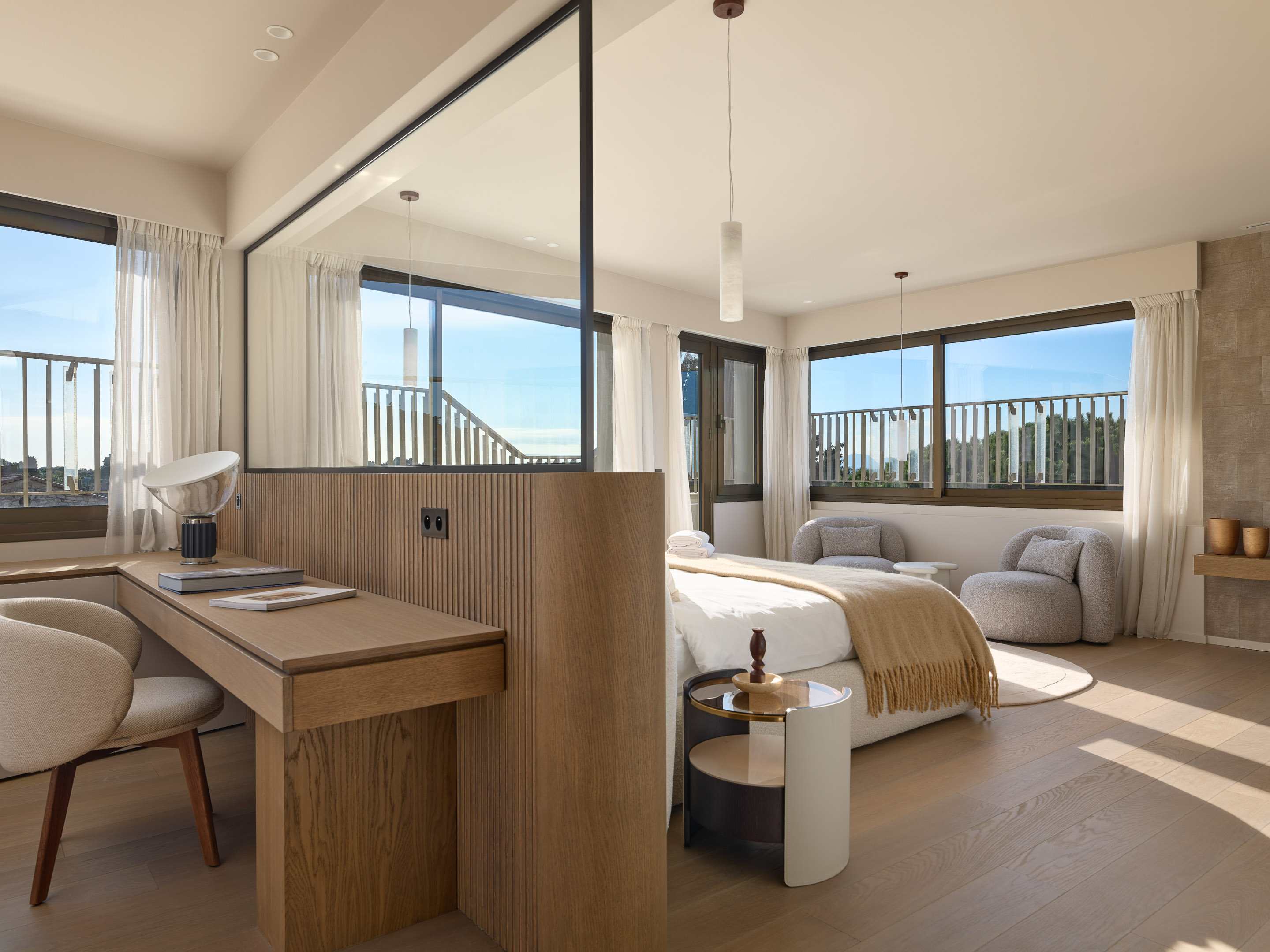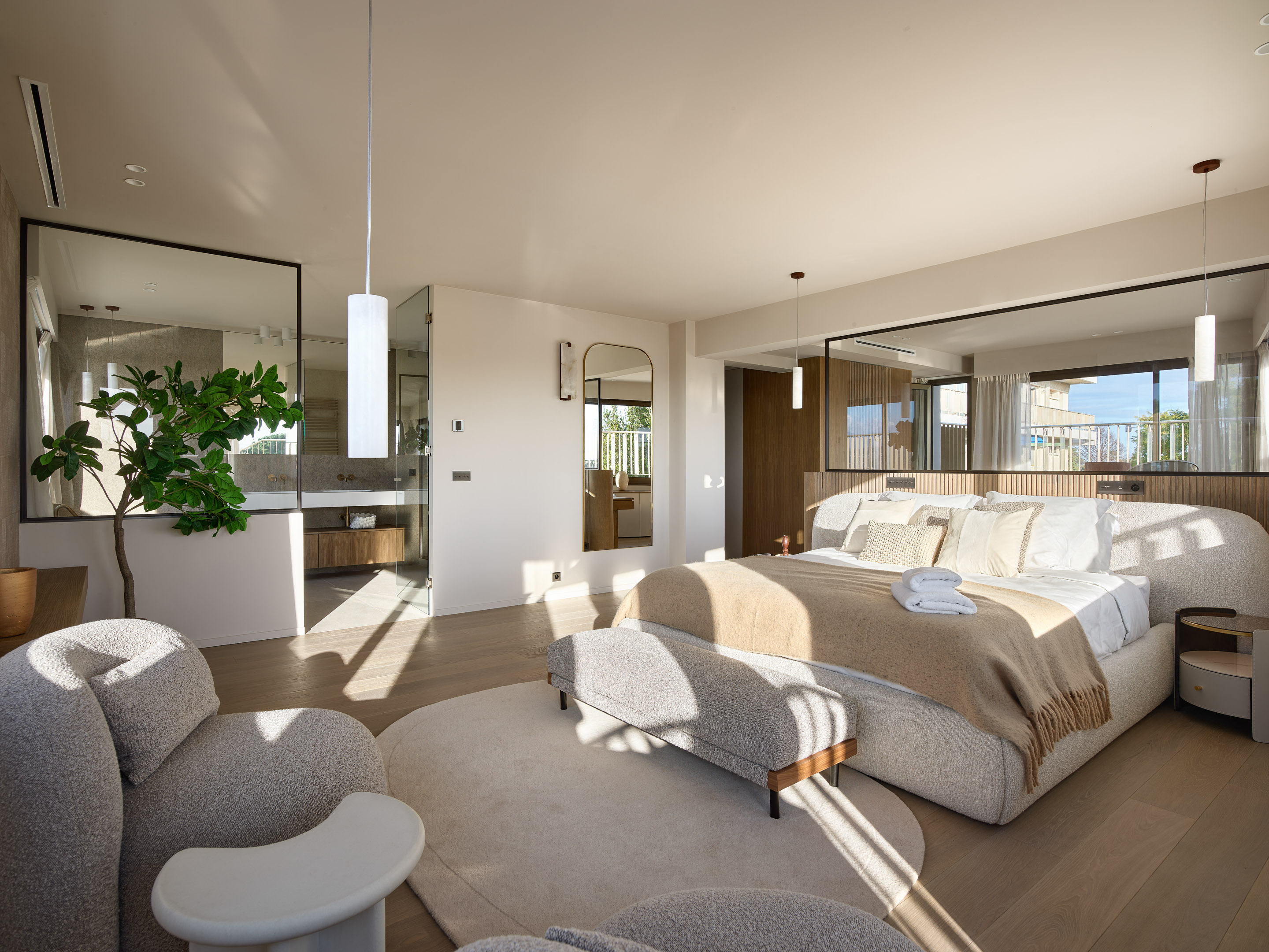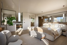 Suite maitre : Une chambre principale avec salle de bain privée et deux dressings.