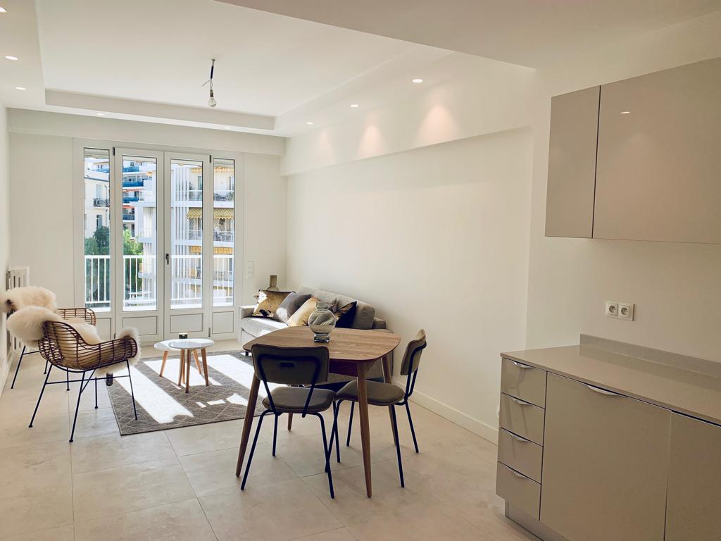 Appartement de 60m2 entièrement rénové avec des matériaux haut de gamme et de grande qualité. Il est situé au Palace, l’une des résidence les plus prestigieuse et recherchée du Carré d’or de Nice.