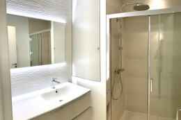 Salle de bain avec douche italienne, WC séparé.