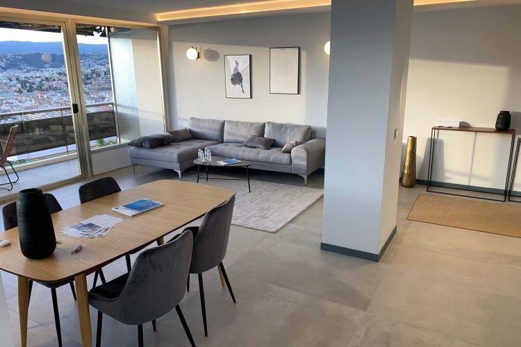 L’appartement d’angle de 85m2 avec une belle terrasse donnant sur une vue panoramique de ver et de ville de Nice.